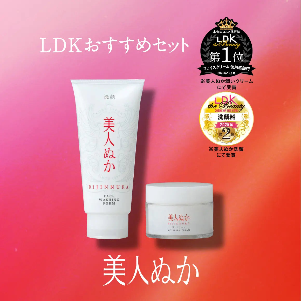 本音のコスメ批評誌『LDK the Beauty』で「洗顔料」部門ベストコスメ第2位を取得した洗顔と、「フェイスクリーム使用感」部門第1位を取得した潤いクリームを含む、お墨付きのセット。