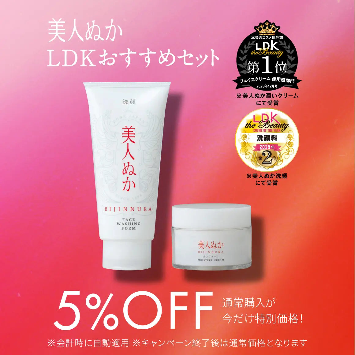 本音のコスメ批評誌『LDK the Beauty』で「洗顔料」部門ベストコスメ第2位を取得した洗顔と、「フェイスクリーム使用感」部門第1位を取得した潤いクリームを含む、お墨付きのセット。